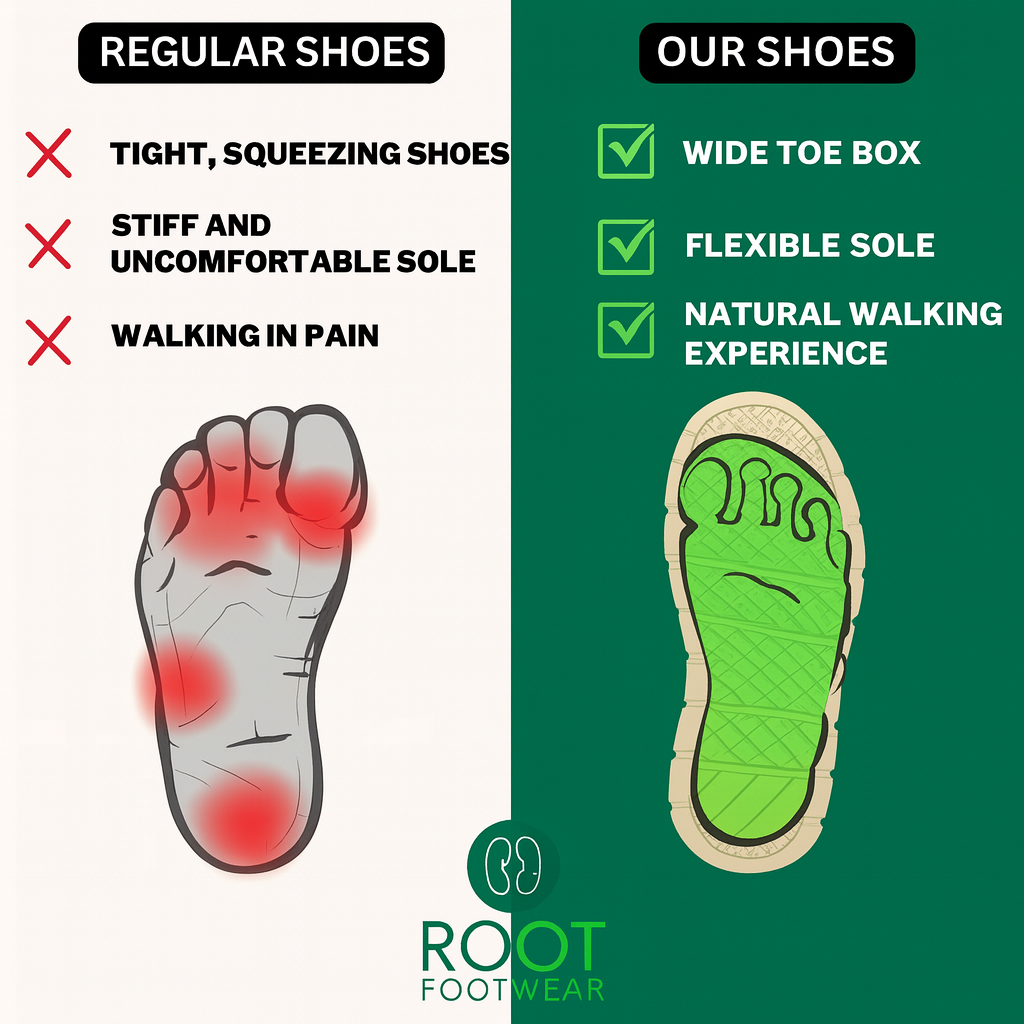 Spacious Toe Box – Gives your toes the freedom to spread naturally, reducing pressure and enhancing balance, flexibility, and strength—especially beneficial for wider feet.